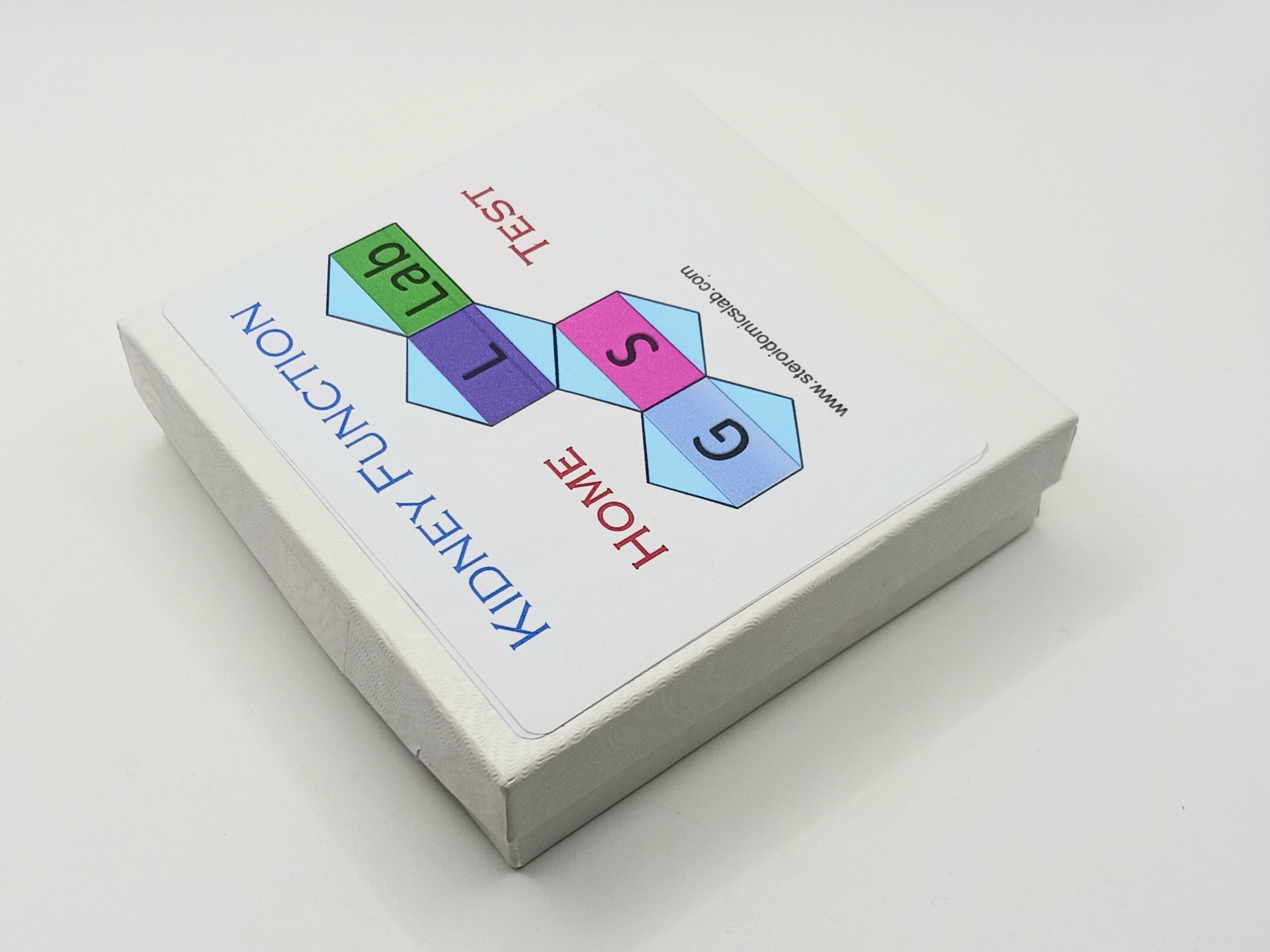 The Kidney Function Urine Home Test Kit. Samples are analyzed by Ultra Performance Liquid Chromatography attached with Mass Spectrometer (UPLC-MS/MS).